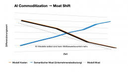 Technologie wird Commodity. KI-Modelle, Tools und Plattformen gleichen sich an. Der nachhaltige Wettbewerbsvorteil verschiebt sich von Technologiezugang zu Steuerungsfähigkeit. Die Frage ist nicht mehr, wer die beste KI hat, sondern wer besser entscheidet.